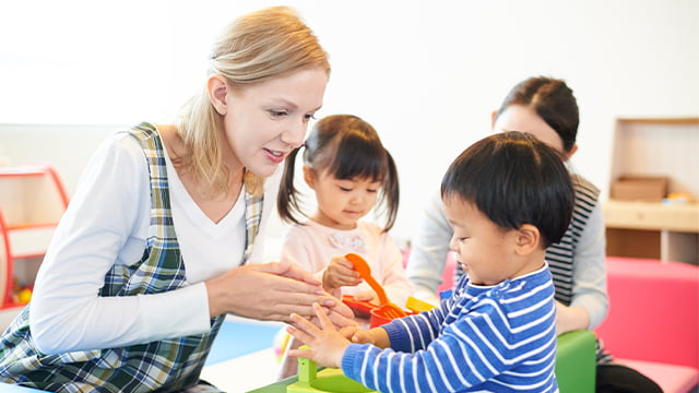 レッスンだけでなく、通常保育や遊びの時間を一緒に過ごすなど、より自然な環境でリアルな英語と触れ合うことも出来ます。